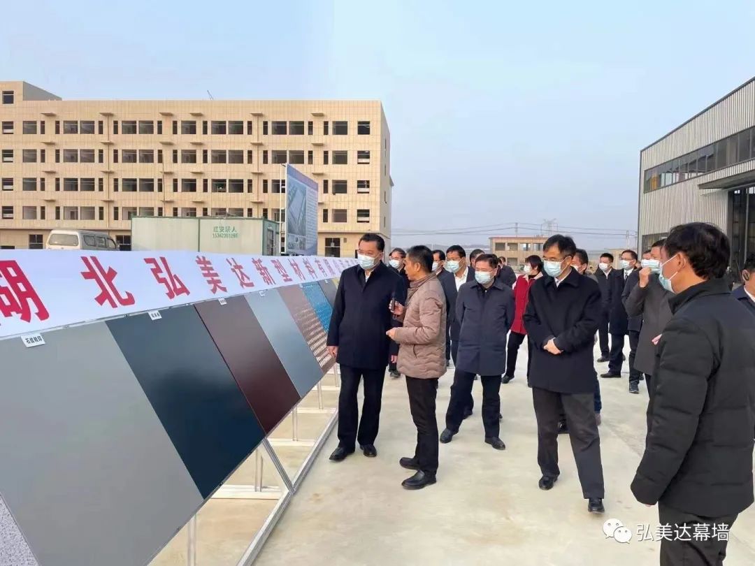 當日下午4:00,湖北省黃岡市市委書記張家勝、市長李軍杰帶領各(市)縣領導到達弘美達新生產基地現場。書記和市長剛下車便停駐在項目介紹公示欄前認真觀看了項目介紹。